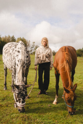 Aby odświeżyć i utrzymać idealny wygląd dzianiny, delikatnie wyczesz ją szczotką z miękkim włosiem lub usuń zmechacenia palcami – to naturalny proces dla wełny.