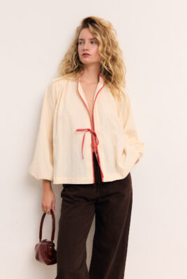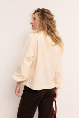 Bawełniana koszula Penny na długi rękaw to ponadczasowy i stylowy element garderoby. Koszulę wykonano z wysokiej jakości bawełnianego materiału ze standardem OEKO-TEX®, który jest miękki i przyjemny w dotyku. Wiązana na piersi koszula stanowi doskonałą bazę dla wielu stylizacji, dodając im nuty klasyki i szyku.