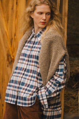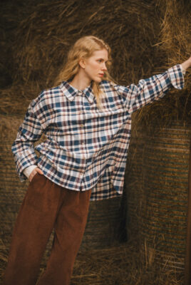 Koszula Storm to idealny wybór na chłodniejsze dni – wykonana z czesanej, certyfikowanej, europejskiej flaneli w modny, jesienny wzór w kratę. Połączenie tonów niebieskiego, czerwieni i bieli doskonale komponuje się z jeansem oraz innymi odcieniami brązu, tworząc stylową i przytulną całość.