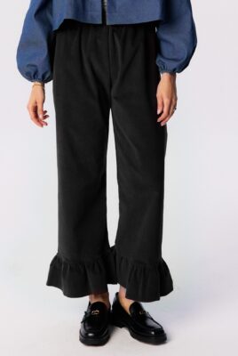 Zanurz się w wyjątkowym stylu i wygodzie naszych sztruksowych spodni Calais z najnowszej jesiennej kolekcji. Elastyczna gumka w pasie zapewnia idealne dopasowanie, a ozdobne falbanki na dole nogawek dodają im lekkości i elegancji. Staranne wykonanie oraz precyzyjne wykończenia czynią te spodnie doskonałym wyborem na każdą okazję od jesiennych spacerów po wieczorne wyjścia. Stwórz niezapomnianą stylizację, dopasowując je do swojego ulubionego obuwia!