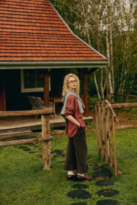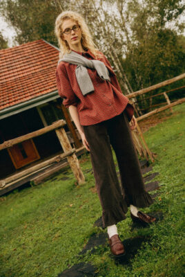 Sztruksowe spodnie Calais z najnowszej jesiennej kolekcji. Elastyczna gumka w pasie zapewnia idealne dopasowanie, a praktyczne kieszenie dodają funkcjonalności, nie zaburzając kobiecej linii sylwetki. Ozdobne falbanki na dole nogawek nadają im lekkości i subtelnej elegancji.