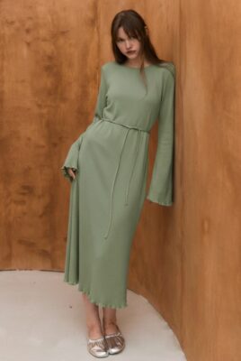 Model ROSIE MERINO to długa sukienka typu midi, charakteryzująca się luźniejszym krojem, który lekko podkreśli sylwetkę. Jej wykończenie daje piękny efekt falującego dołu oraz rękawów. Sukienka znakomicie eksponuje kobiece kształty, jednocześnie subtelnie wysmuklając sylwetkę. Konstrukcja sukienki jest ponadczasowa i bez trudu dostosuję się do Twoich potrzeb, oferując wiele możliwości stylizacyjnych. Dodając ulubioną bluzę, sweter lub ramoneskę, w mig zmienisz swój look z wieczorowego na codzienny!