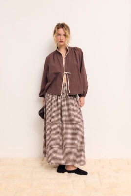 Zachwyć się ciepłem i miękkością flaneli w klimatycznej czekoladowo-kremowej kratce. Blair to spódnica, która łączy jesienny styl, komfort i najwyższą jakość wykonania. Wykonana w 100% z przyjemnej w dotyku, przewiewnej flanelowej bawełny, sprawdzi się zarówno w codziennych stylizacjach, jak i podczas wyjątkowych okazji. Charakterystyczne marszczenia w pasie subtelnie podkreślają talię i nadają sylwetce eleganckiego charakteru.