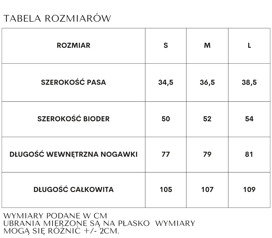 Spodnie pięknie współpracują z ruchem ciała — subtelnie falują przy chodzeniu i naturalnie układają się na biodrach, tworząc proporcje, które wydłużają nogi i podkreślają sylwetkę.