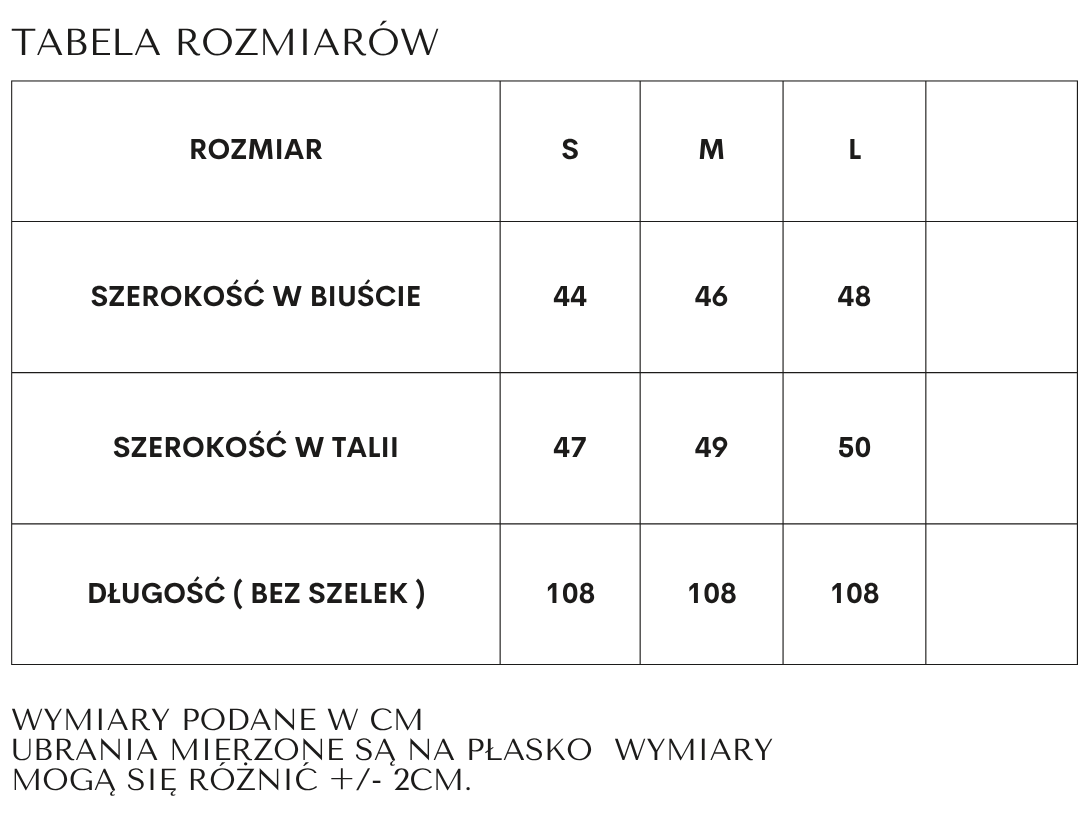 Model ma kobiecą, podkreślającą sylwetkę linię z lekko dopasowaną górą i prostym dołem sięgającym za kolano.