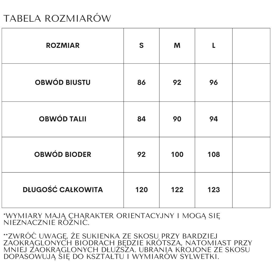 Modelka ma 175cm wzrostu i nosi rozmiar S.