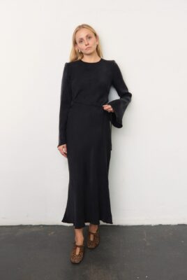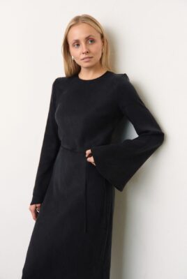 Model ROSIE to długa sukienka typu midi, charakteryzująca się krojem, który podkreśla sylwetkę. Jej fason gwarantuje doskonałe dopasowanie do ciała, nie krępując przy tym ruchów. Sukienka znakomicie eksponuje kobiece kształty, jednocześnie subtelnie wysmuklając sylwetkę. Konstrukcja sukienki jest ponadczasowa i bez trudu dostosuje się do Twoich potrzeb, oferując wiele możliwości stylizacyjnych. Dodając ulubioną bluzę, sweter lub ramoneskę, w mig zmienisz swój look z wieczorowego na codzienny!