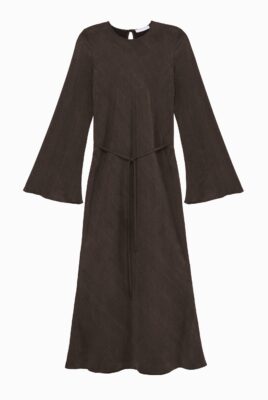 Model ROSIE to długa sukienka typu midi, charakteryzująca się krojem, który podkreśla sylwetkę. Jej fason gwarantuje doskonałe dopasowanie do ciała, nie krępując przy tym ruchów. Sukienka znakomicie eksponuje kobiece kształty, jednocześnie subtelnie wysmuklając sylwetkę. Konstrukcja sukienki jest ponadczasowa i bez trudu dostosuje się do Twoich potrzeb, oferując wiele możliwości stylizacyjnych. Dodając ulubioną bluzę, sweter lub ramoneskę, w mig zmienisz swój look z wieczorowego na codzienny!