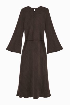Model ROSIE to długa sukienka typu midi, charakteryzująca się krojem, który podkreśla sylwetkę. Jej fason gwarantuje doskonałe dopasowanie do ciała, nie krępując przy tym ruchów. Sukienka znakomicie eksponuje kobiece kształty, jednocześnie subtelnie wysmuklając sylwetkę. Konstrukcja sukienki jest ponadczasowa i bez trudu dostosuje się do Twoich potrzeb, oferując wiele możliwości stylizacyjnych. Dodając ulubioną bluzę, sweter lub ramoneskę, w mig zmienisz swój look z wieczorowego na codzienny!