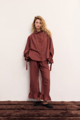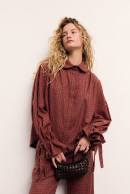 Efektowne marszczenia na ramionach oraz rękawy z falbaną i wiązaniem na mankiecie nadają sylwetce lekkości i subtelnej kobiecości. Koszula sprawdzi się zarówno do pracy w zestawie z jeansami, na spacery, jak i na jesienne wyjścia. Połącz ją ze spodniami Calais, aby stworzyć przytulny, sezonowy look.
