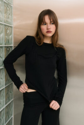 Longsleeve z dodatkowym, nakładanym topem w kolorze czarnym to nowoczesna interpretacja warstwowości. Model zaprojektowany tak, abyś mogła nosić go razem lub osobno – w zależności od nastroju i stylizacji.