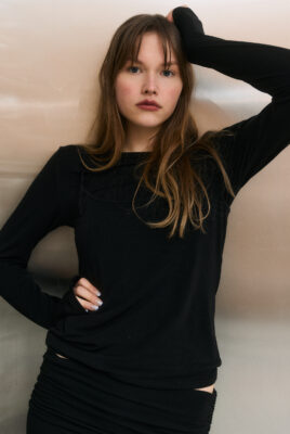 Longsleeve z dodatkowym, nakładanym topem w kolorze czarnym to nowoczesna interpretacja warstwowości. Model zaprojektowany tak, abyś mogła nosić go razem lub osobno – w zależności od nastroju i stylizacji.