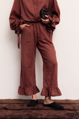 Spodnie Calais z najnowszej jesiennej kolekcji wykonane są z miękkiej, ciepłej flanelowej bawełny w najmodniejszą kratę tego sezonu w odcieniach szaro-czerwonych. Elastyczna gumka w pasie gwarantuje idealne dopasowanie, a praktyczne boczne kieszenie zwiększają funkcjonalność.